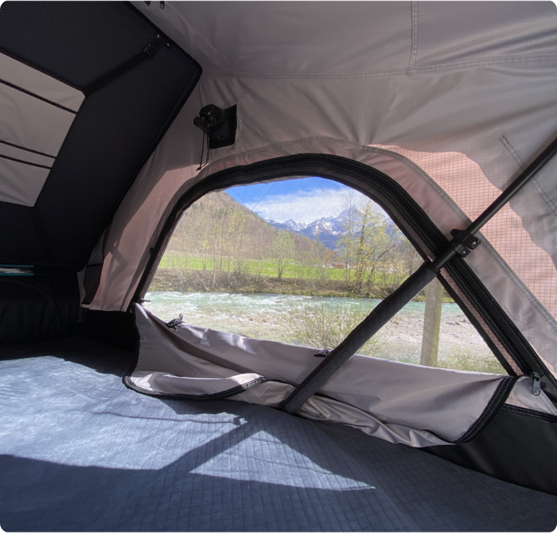 Your Gordigear roof tent is equipped with windows on all four sides, giving you a complete all-round view . At the same time, the 360° ventilation ensures fresh air from every side, keeping your tent climate pleasant and comfortable.