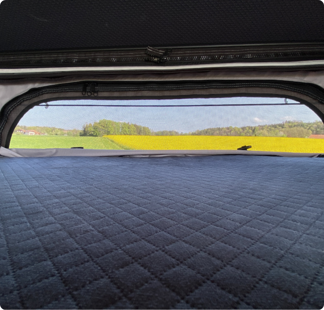 The flysheet of your Gordigear roof tent can be conveniently stowed away when needed. This means there is no annoying wind noise and you can enjoy a quiet and relaxed night even in strong winds. Ideal for anyone who values comfort and undisturbed sleep - no matter what the weather conditions are like.