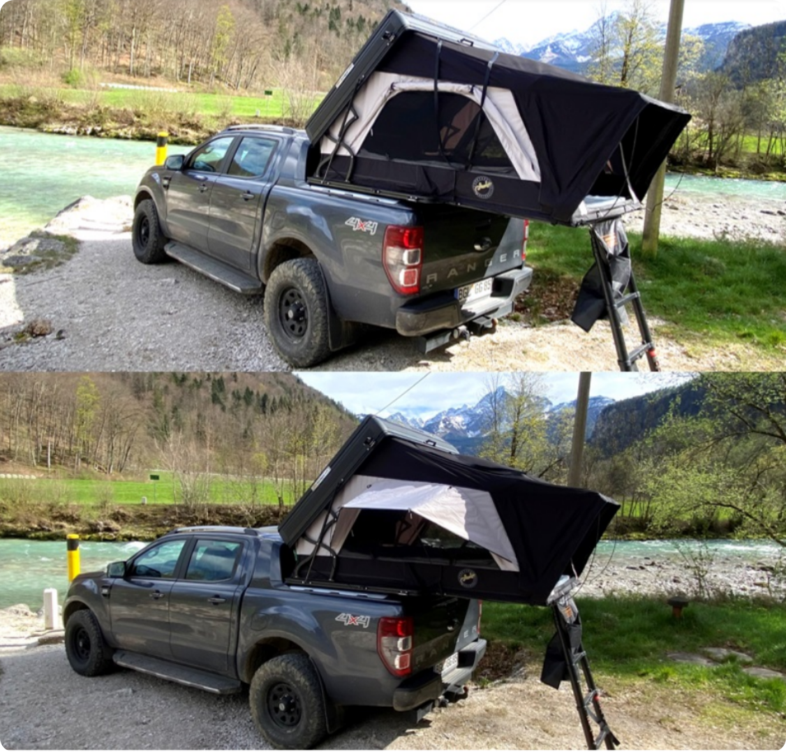 The entire Gordigear roof tent is equipped with a durable aluminum hard shell that offers protection and stability. The floor is additionally reinforced with a honeycomb structure , which ensures maximum robustness, lightness and durability - perfect for maximum load.