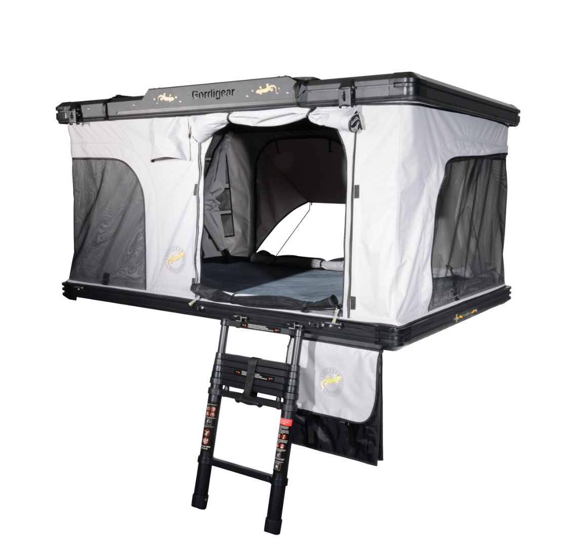 The entire Gordigear roof tent is equipped with a durable aluminum hard shell that offers protection and stability. The floor is additionally reinforced with a honeycomb structure , which ensures maximum robustness, lightness and durability - perfect for maximum load.