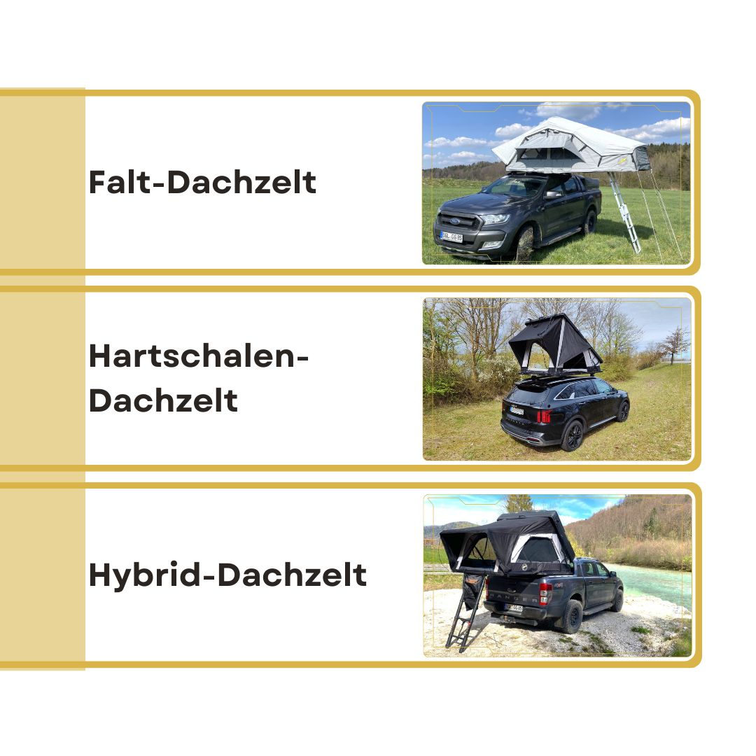 Hier findest du einen Überblick über die Dachzelt-Typen und deren Vor- und Nachteile, sowie deren Eckdaten wie Gewicht und Liegefläche.
