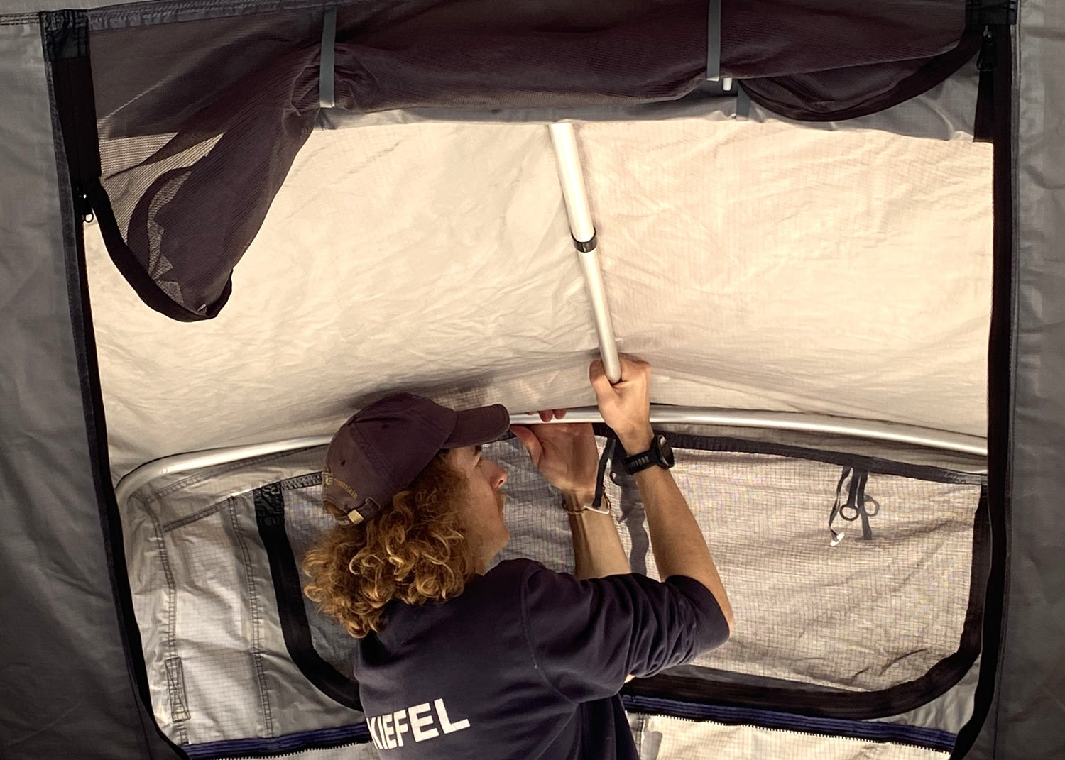 Tension rod for the covered entrance of the Tanami Plus roof tent and the Daintree Pro roof tent.