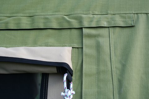 Tent material made of durable and breathable 400g/m² ripstop polyester-cotton blend Roof made of 450g/m² Silverguard Canvas, waterproof, polyurethane impregnated