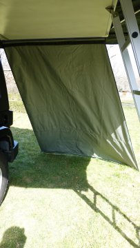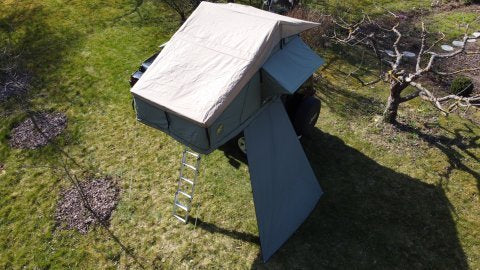 Our side wall is a clever addition for campers who don't need the full protection of a rooftop tent awning. Suitable for all Gordigear pop-up roof tents, it offers protection from the elements while also acting as a privacy screen. The side wall can be installed on either side and uses the piping rail at the base of our tents. The integrated zipper allows for quick assembly and disassembly.