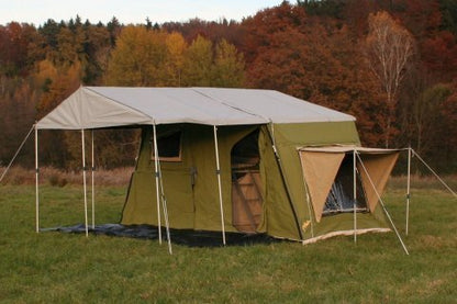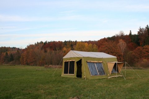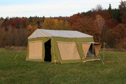 Tent material made of durable and breathable 400g/m² ripstop polyester-cotton blend Roof made of 450g/m² Silverguard Canvas, waterproof, polyurethane impregnated