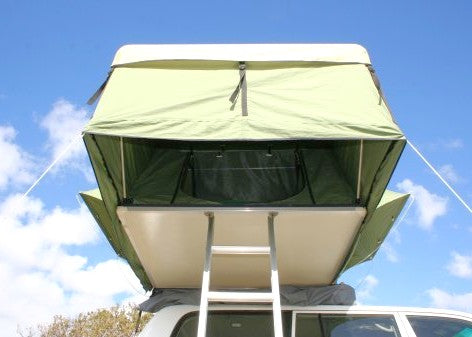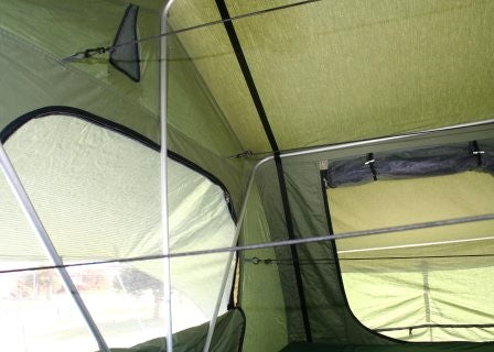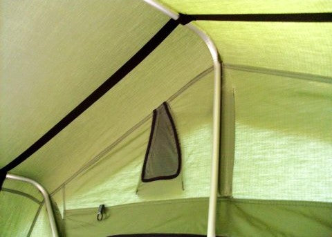 The flysheet can be rolled up and stowed away, thus keeping the noise level low even in windy conditions