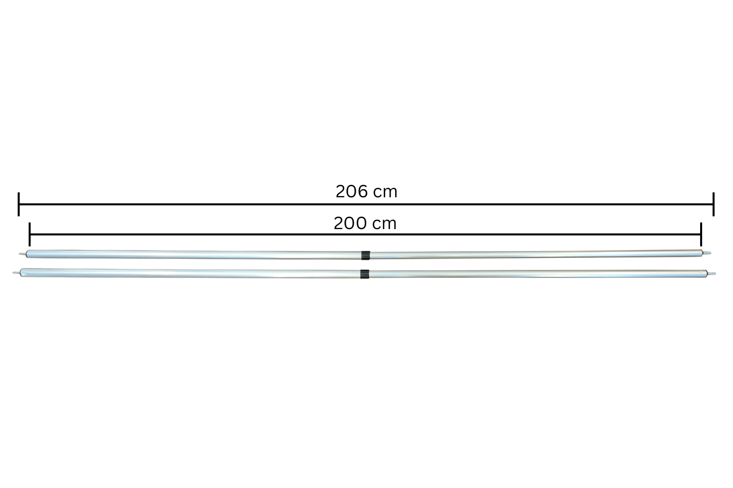 2er Set Teleskopstangen zum Aufspannen der Daintree Vorzelt Eingänge. Die gewünschte Länge kann mithilfe der Twist-Lock Dreharretierung festgestellt werden. Die Stangen haben eine Länge von 110 cm und können auf bis zu 200 cm ausgezogen werden.