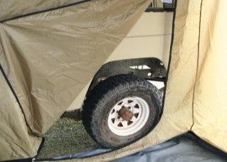 Der Gumtree Zeltraum ist mit zwei Eingängen, einem Panoramafenster sowie einer Durchlade zum Fahrzeug ausgestattet. Türen und Fenster sind mit Moskitonetzen versehen und sorgen für ausgezeichnete Ventilation des Zeltes. Des weiteren wird ein Luftpolster zwischen der eigentlichen Markise und dem Dach des Zeltraumes erzeugt, welches das Zelt in Sommermonaten erheblich abkühlt. Der Boden ist via Reißverschluss befestigt und kann zu Reinigungszwecken herausgenommen werden bzw. wenn der Zeltraum eine Campingdusche behausen sollen. Das Panoramafenster lässt sich sowohl von innen als auch von außen schließen, so dass das Zelt nicht verlassen werden muss wenn es zu regnen beginnt.