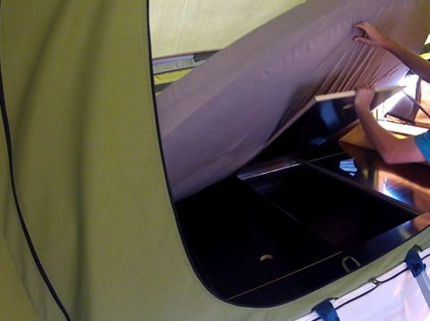 Nein, auch beim TAIGA Anhängerzelt gibt es kein Dachfenster