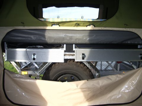 Der Anhängerinhalt ist durch Ladeklappen im Schlafraum leicht erreichbar.