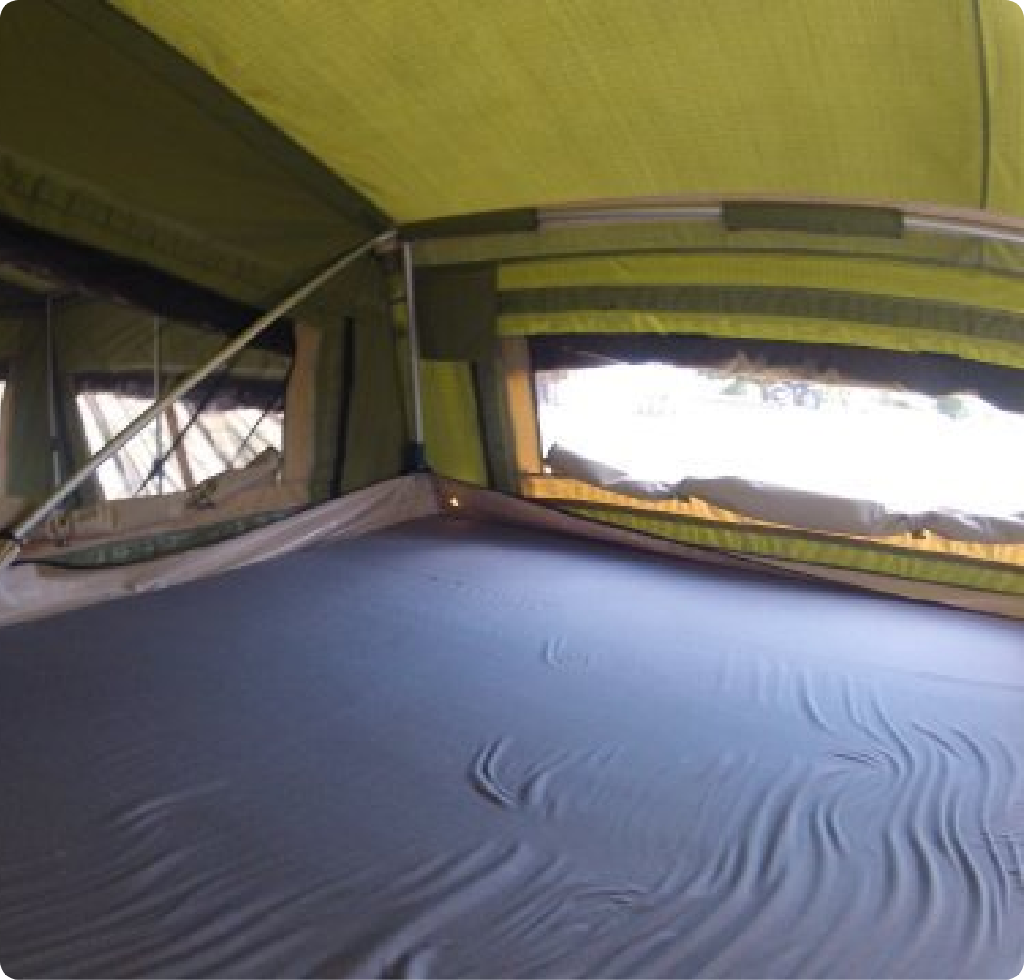 Die Matratzen sind für Dachzeltverhältnisse ebenfalls gut, wer es weicher mag kann eine Luft-Isomatte unterlegen, dann ist es wirklich top.