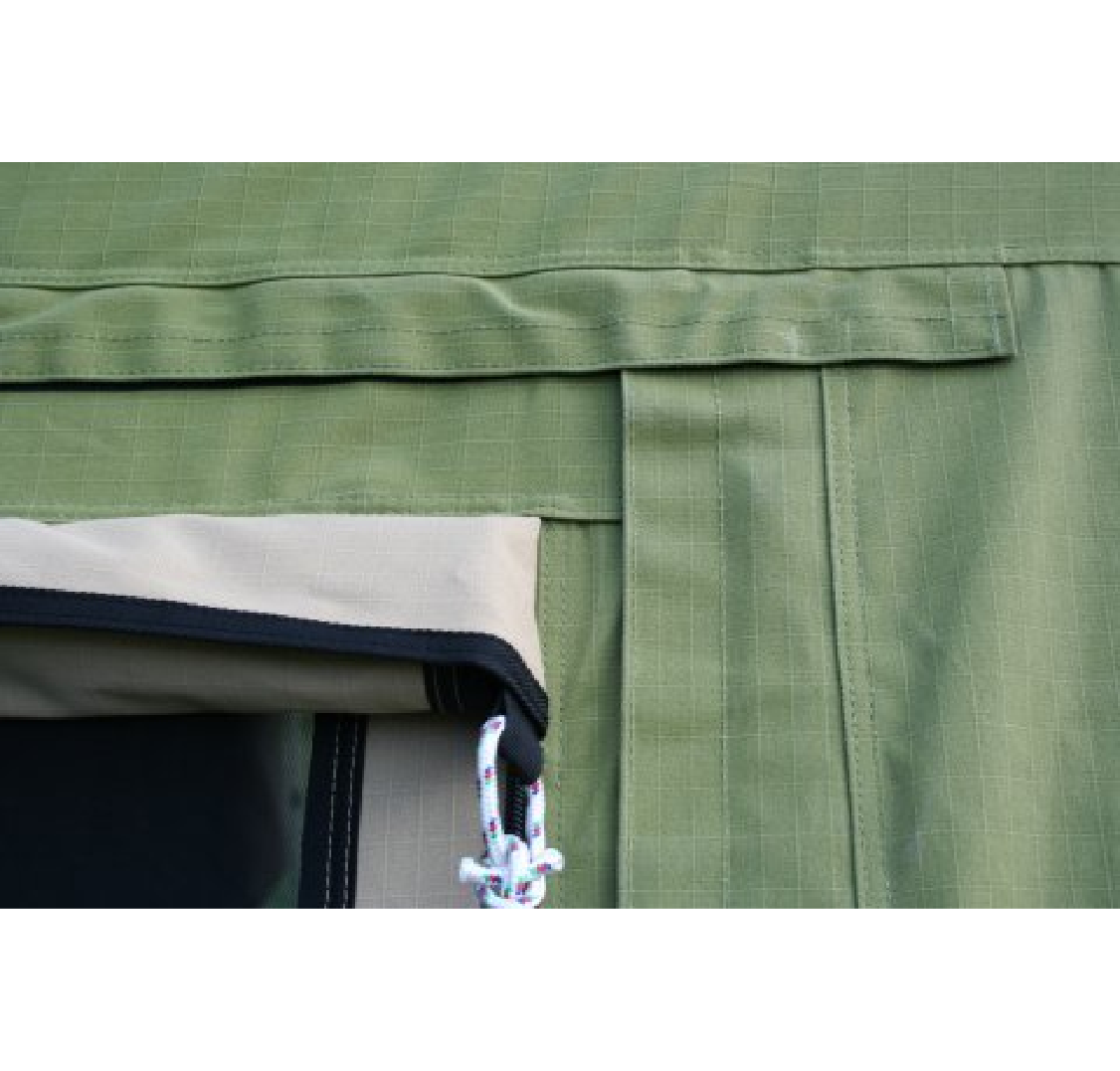 Zeltmaterial aus beständiger und atmungsaktiver 400g/m² Ripstop-Polyester-Baumwollmischung Dachflächent aus 450g/m² Silverguard Canvas, wasserdicht, Polyurethan imprägniert